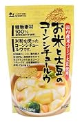 植物油脂(パーム油、有機べに花油)、野菜粉末[とうもろこし、玉ねぎ、にんじん、セロリ]、米粉(国内産)、大豆粉末(国内産)、砂糖(鹿児島)、食塩、白ワイン(国内産)、昆布粉末、醤油粉末、ホワイトペッパー、(原材料の一部に小麦を含む) |
